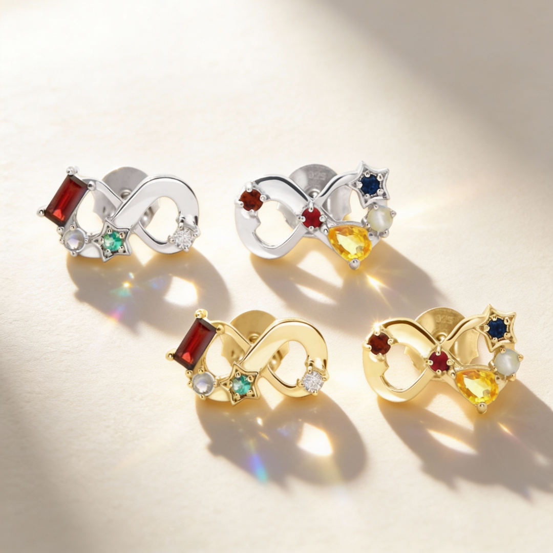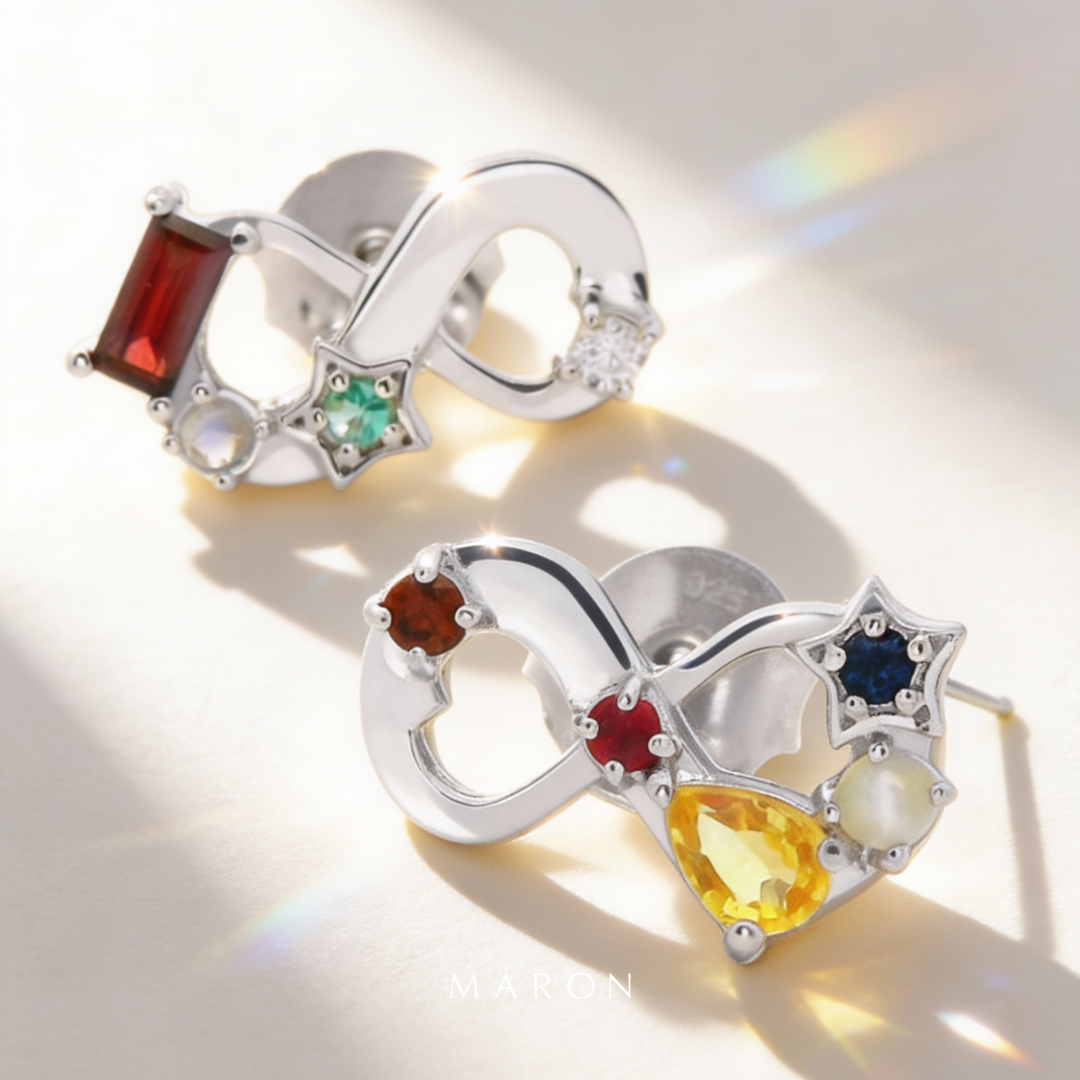 "Nine Lucky Stars Infinity Earring" is sacred jewelry pieces combining 9 authentic gemstones inspired by Thai astrology. Not only do they enhance your charm, but they also balance your energy and bring blessings in all aspects of life—wealth, career, love, and health.